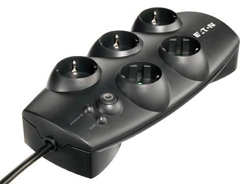 Eaton Protection Box 5 DIN. Surge energy rating: 1110 J, AC outlets quantity: 5 AC outlet(s), AC outlet types: Type F. Colour of product: Black. Weight: 610 g, Width: 120 mm, Depth: 255 mm. Certification: EN 55082-2, EN 55022 B, EN 61000-4-4 4 IEC 61000-4-5. Dimensions (WxDxH): 255 x 120 x 65 mm