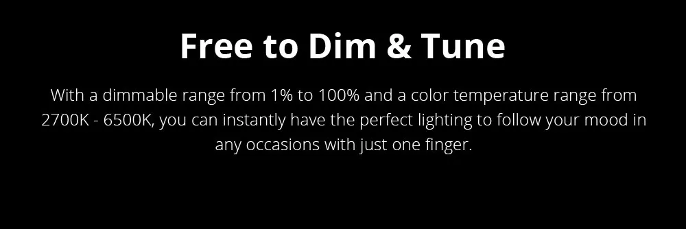 With a dimmable range from 1% to 100% and a color temperature range from 2700k-6500k, you can instantly have the perfect lighting to follow your mood in any occasions with just one finger.